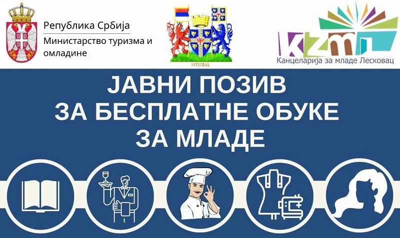 Grad Leskovac, Kancelarija za mlade grada upućuju JAVNI POZIV ZA BESPLATNE KURSEVE/OBUKE ZA MLADE sa teritorije grada